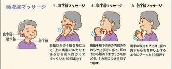 唾液腺のマッサージを行うと唾液分泌量が促進されます。