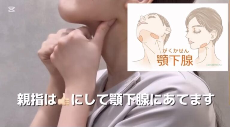 次に顎下腺の辺りをグーっとおします。
