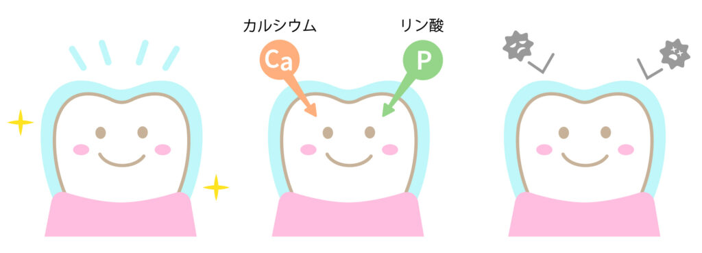 ②再石灰化の促進:歯にカルシウムやリンが戻りやすくしてくれます