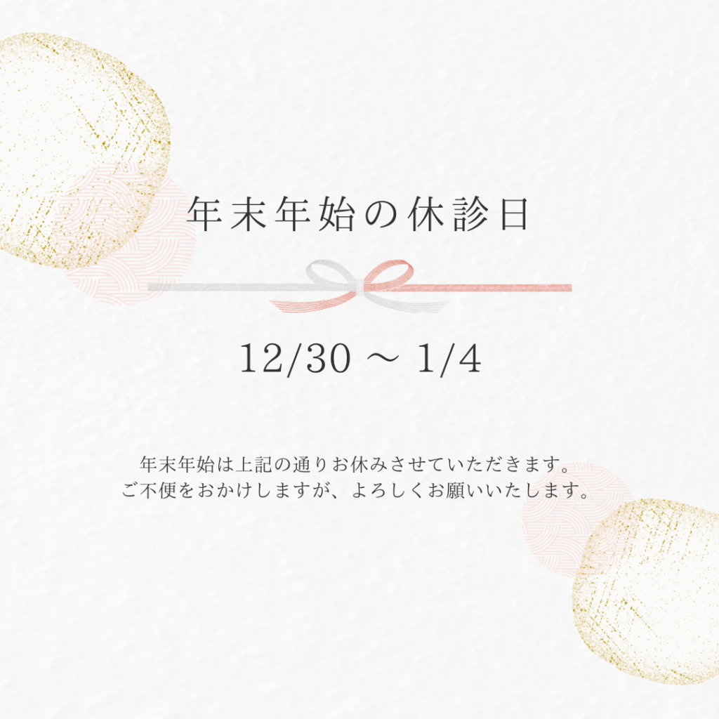 12月30日(火)~1月4日(日)まで休診とさせていただきます。